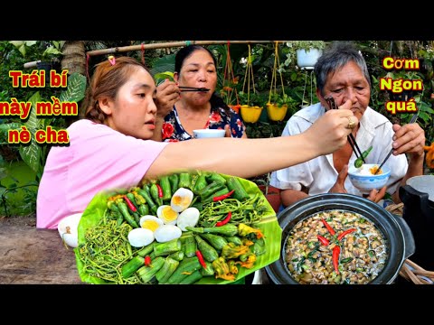 bữa cơm ngon tóp mỡ kho tiêu ,đọt chạy bí non mướp luộc hột vịt dầm nước...